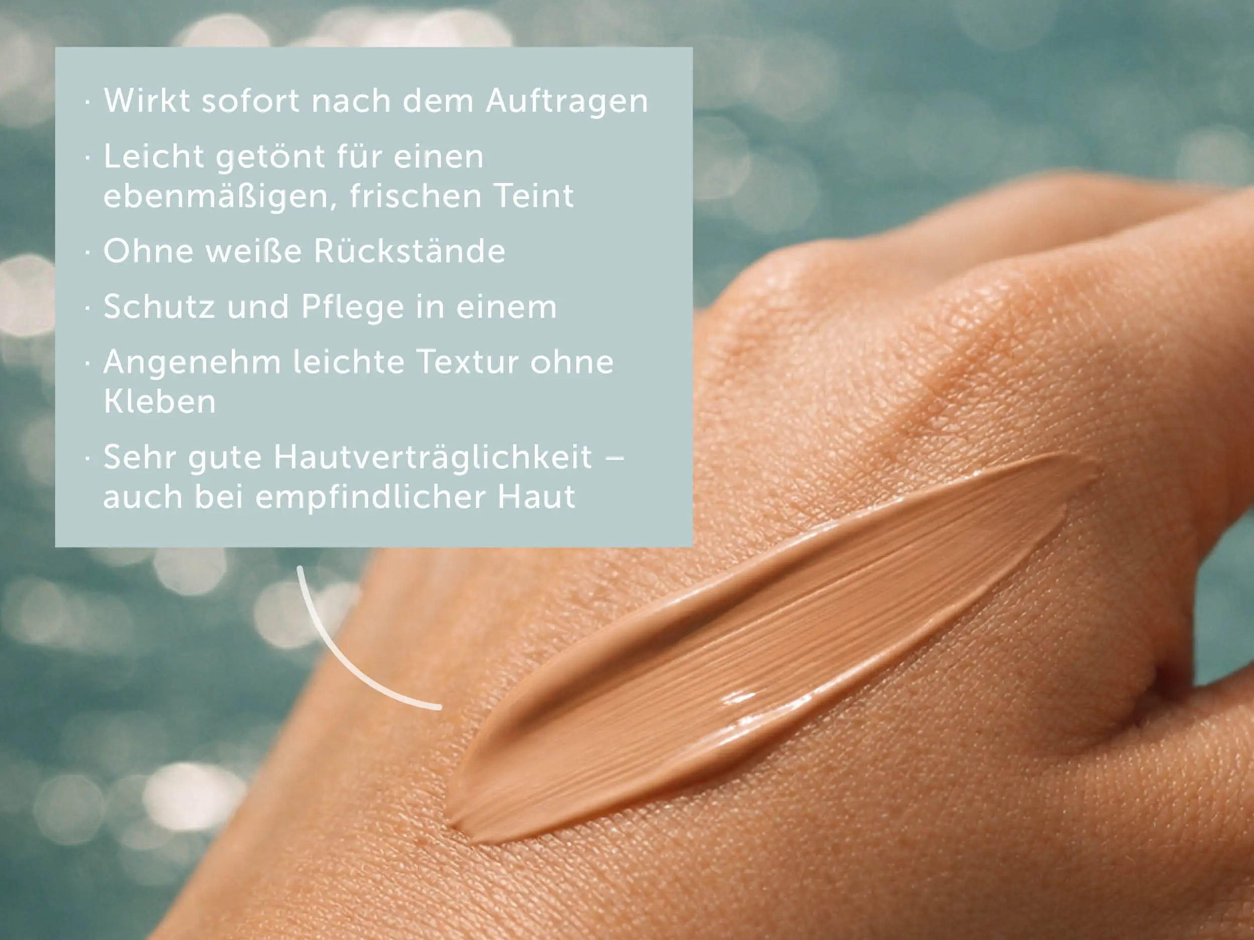 • Lightly tinted for an even, fresh complexion without white residue